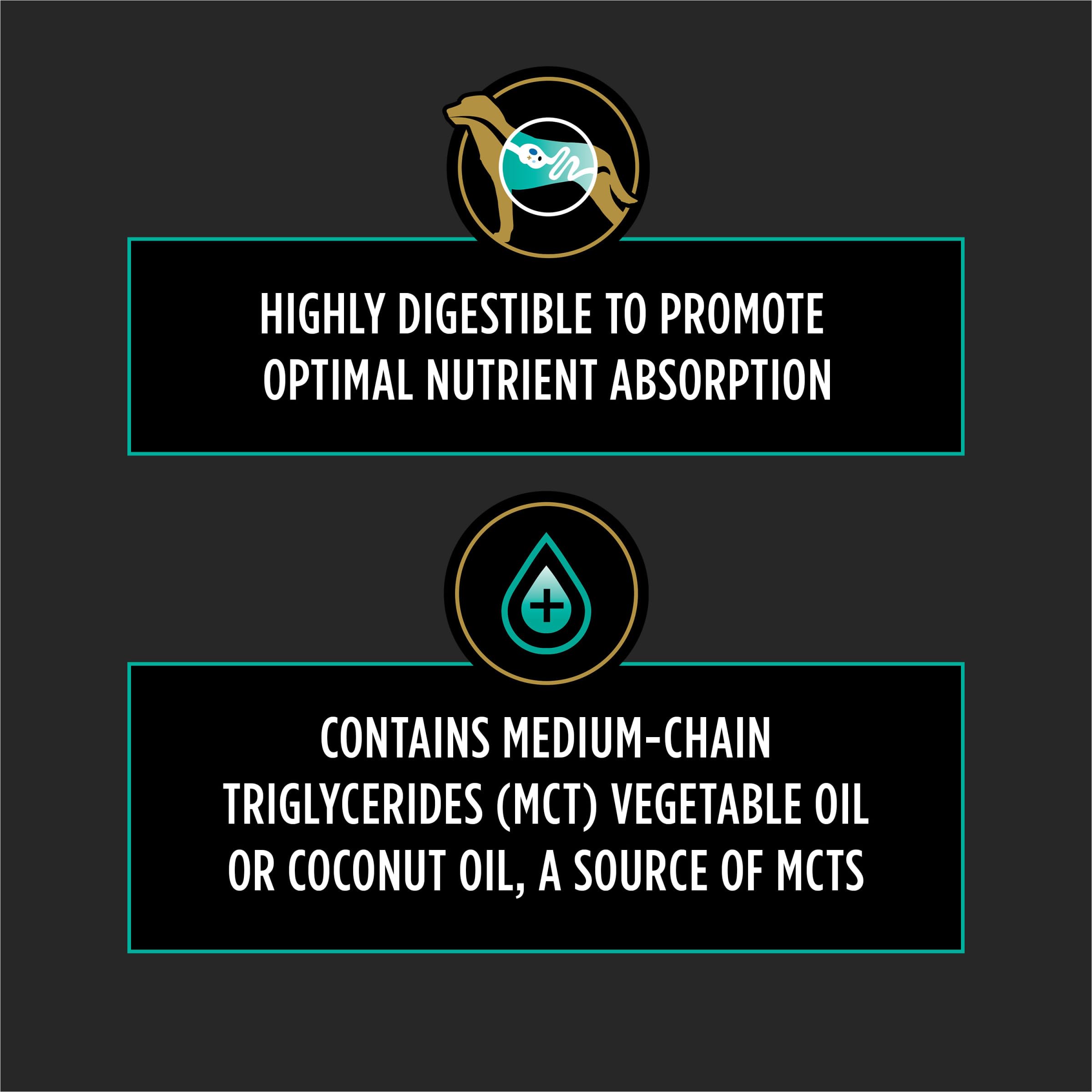 - Dog digestive support formula containing medium-chain triglycerides (6.1-17.3 percent of fat), a source of fat that is easily digested and absorbed to provide readily available energy