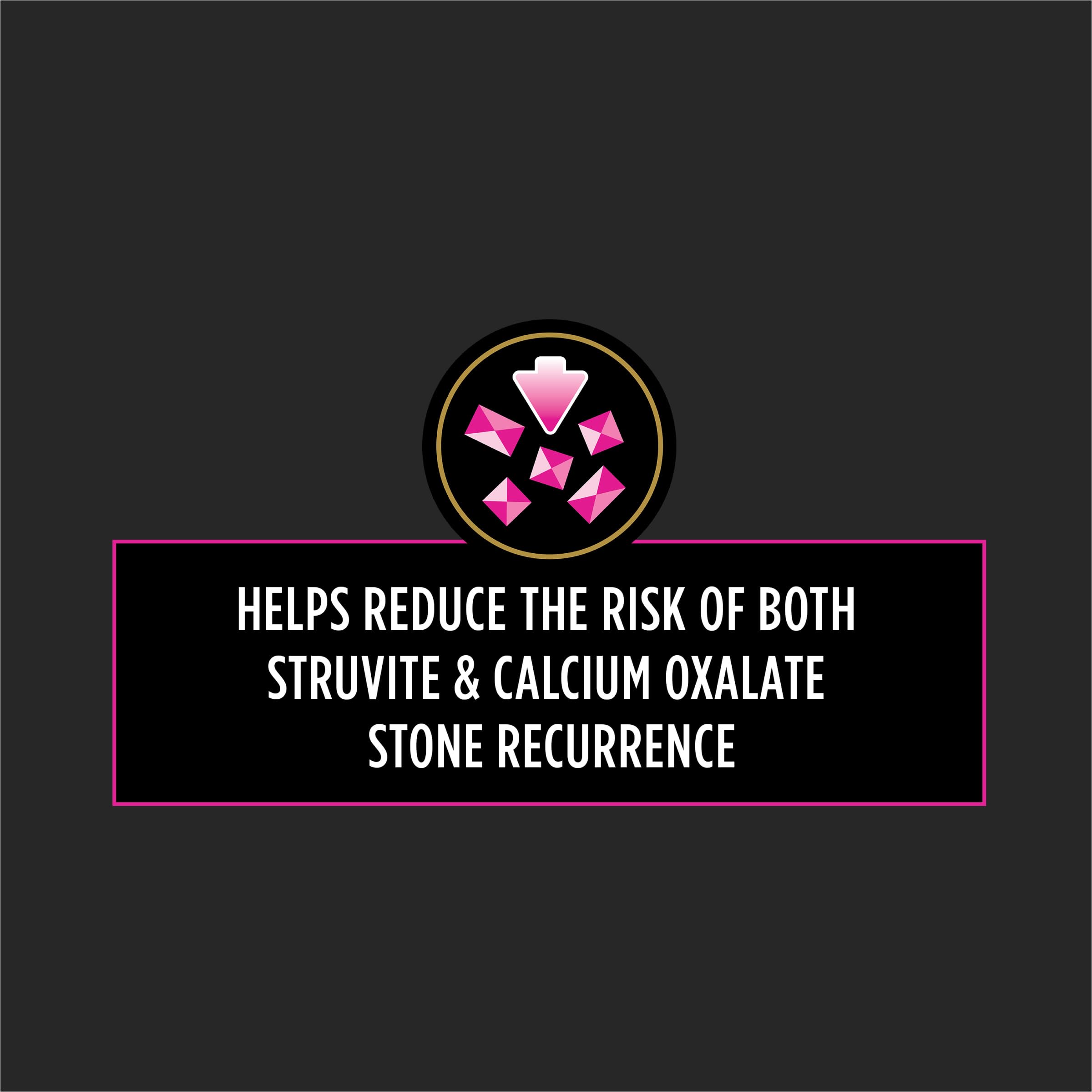 Helps reduce the risk of both struvite and calcium oxalate stone recurrence